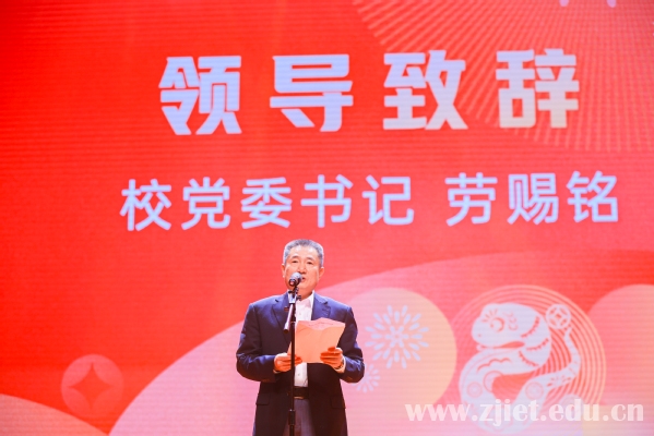 党委书记劳赐铭致新年贺词。他代表学校党政领导班子向一年来为学校发展倾注心血和汗水的全校师生、各级组织和社会各界致以衷心的感谢和最美好的新年祝福。他回顾了2024年学校在党建引领、教育教学、师资力量、青春建功、服务办学等方面所取得的成效,并寄语广大师生要坚定信心,继续以时不我待的奋进姿态勇毅前行,不断超越自我,在以中国式现代化全面推进中华民族伟大复兴的征程中贡献经贸力量。